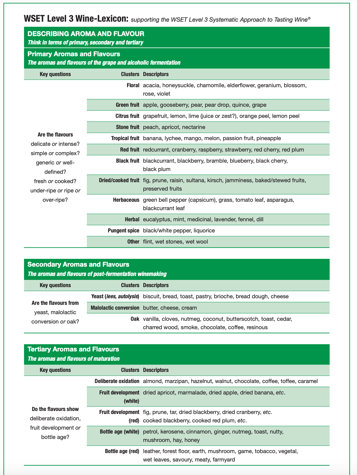 This is where the real fun begins as there are loads of different sensations hitting you all at once that you should think about, note down and consider, as well as all of the different flavours you’re getting (broken down into three categories: primary, secondary and tertiary):